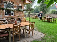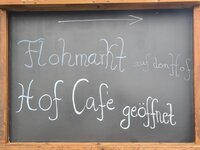 des Dorfcafés auf dem Drei-Eichen-Hof. Auch auf dem Hof zu finden, weitere Stände.